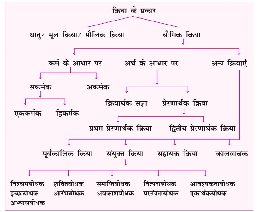 (घ) कालवाचक- क्रिया के जिस रूप से ये पता चलता है कि क्रिया किस समय हुई है, उसे कालवाचक क्रिया कहते हैं। इसे हम ‘काल’ के नाम से पढ़ते हैं।